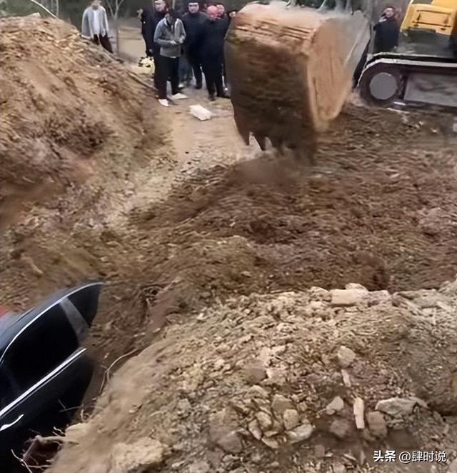 本以为会一直硬气下去,没想到这位主事人的态度转变得极快,不仅公开承认了错误,还赶紧找来挖掘机,把那辆刚埋进去不久的豪车又给重新刨了出来。