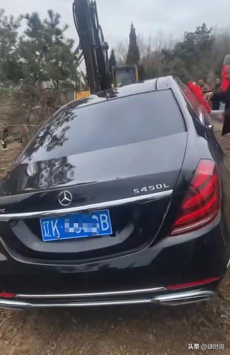 这出戏的主角,不是什么妖魔鬼怪,而是一辆黑色的奔驰S450L,挂着一副“辽K8888B”的连号牌,在挖掘机的轰鸣声中,被当成陪葬品,堂而皇之地送进了土里。