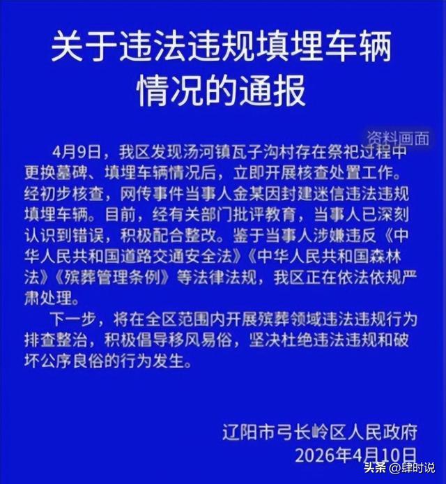 通报里说得很明白,这事就是“因封建迷信违法违规填埋车辆”,直接把性质给定死了。